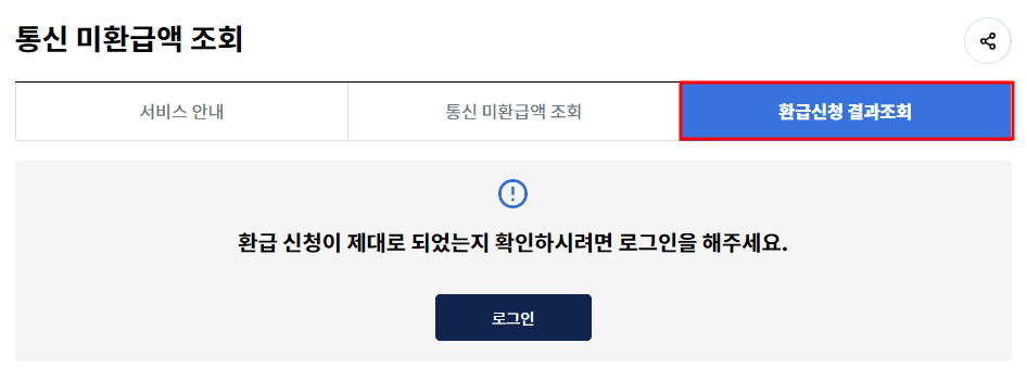 * 통신비 미환급금 조회의 경우 비회원으로도 가능하지만 통신비 미환급금 환급 신청 및 환급신청 결과조회는 회원가입 후 가능합니다.